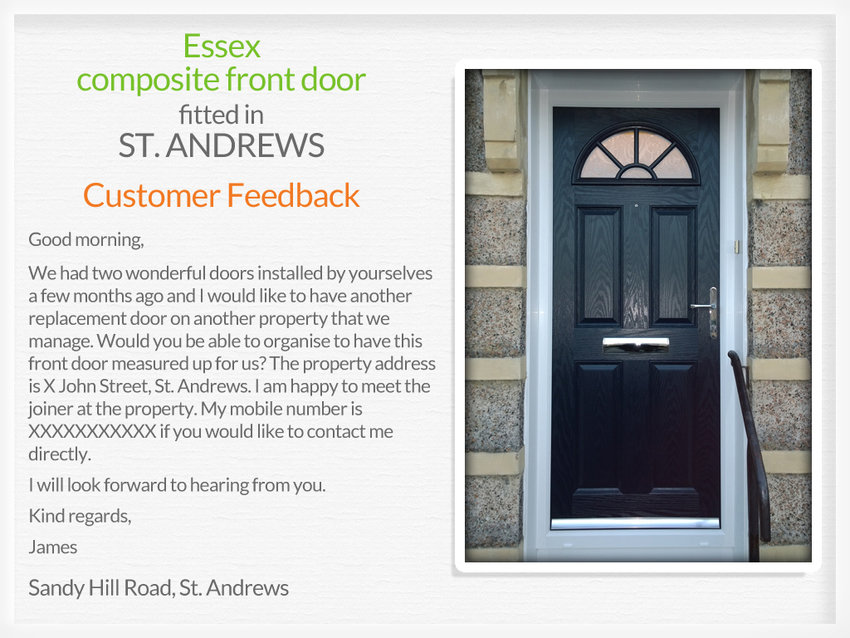 To view the front door that Bernadette & David had fitted in St. Andrews, click on → COMPOSITE FRONT DOOR