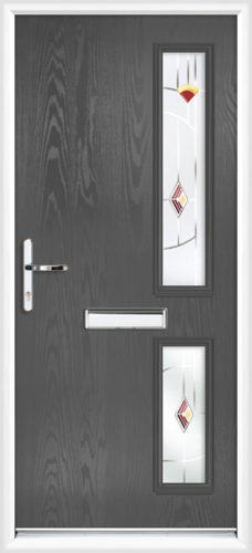 With two vertical glass panels on the hinge side, one half height and the other below slightly shorter, and a flat Garda style slab, the Rutland composite front doors are perfect for anyone looking for a contemporary door design for their home. These doors are thermally efficient, with warm edge tech spacer bars in the glass reducing heat loss from inside the home, and with gasket weatherseals pre fitted around the door's edges ensuring a draughtproof seal on those winter months.