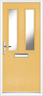 The Dartford Anice composite front door is a simple design of two plain glass panels within a flat slab. It offers the same look as a wooden door without the drawbacks, and is available with full installation.