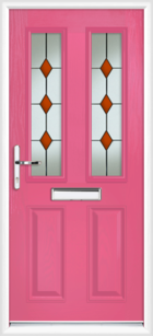 Combine Red Sextet glass with the Dorset composite front door for a colourful entrance to your home. Allowing natural light to shine through, with choices of backing glass to add a decorative pattern as well as obscure viewing into your home.
