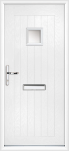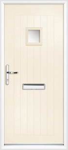 The Cheshire Anice composite door is a cottage design with a grooved slab and a small clear glass panel in the top section. This door fits well within a traditional or modern building, with several options to reflect your home's aesthetic.